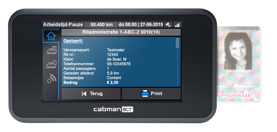 De ritgegevens van de geselecteerde rit verschijnen en u kunt alsnog een bon printen.